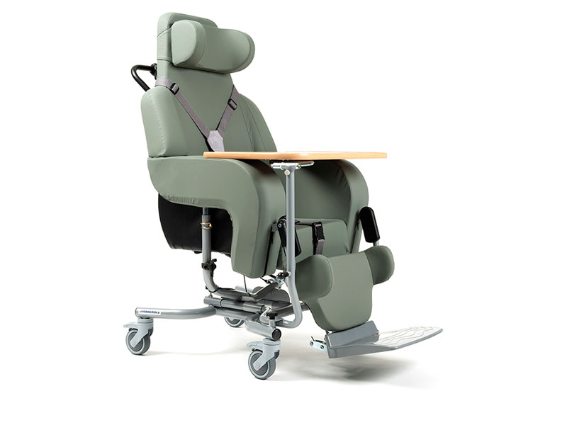 Ustawiamy wózek pod pacjenta (podnóżki, oparcie, siedzisko). Służymy pomocą w razie pytań czy problemów.